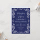Este Marinho mexicano Blue Vintage Formal Elegante Invitation elegant design mostra um fundo azul marinho profundo adornado com delicados florescimentos ornamentais brancos em cada canto e ao longo das fronteiras. Os motivos giratórios parecem filigres feitos à mão ou ornamentos caligráficos vintage, criando um olhar gracioso e eterno. Seu espaço limpo no centro e layout simétrico o tornam ideal para convites para casamento, anúncios formais ou programas de eventos.
