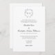 Um texto tradicional preto e branco com um espaço para os nomes dos pais dos noivos, se quiserem. Adicione suas iniciais na coroa no topo. Clássico e Elegante
