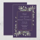 Com delicadas folhas de aquarela em um fundo roxo elegante. Este convite de casamento botânico elegante pode ser personalizado com as informações do seu dia especial em tipografia moderna. Criado por Thisisnotme©