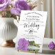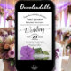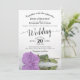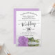 Este maravilhoso convite para o casamento apresenta um design floral moderno com um rosa lilás púrpura, de solteiro longo, deitado do lado, refletindo em uma piscina com ondas e ondulações. A design é simples, elegante, romântica e sofisticada, com caligrafia antiga e conteúdo totalmente personalizável.