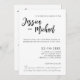 Apresentando o Convite de Casamento com Detalhes Abrangentes - uma forma atenciosa e informativa de estender o seu convite a entes queridos. Este convite, parte da Elegance Collection, combina perfeitamente os detalhes essenciais do casamento na frente com informações adicionais sobre o contrário, garantindo que seus convidados tenham tudo o que precisam para participar na celebração. A frente do convite, aderindo às linhas limpas e à estética moderna da Elegance Collection, apresenta uma tipografia negra elegante em branco pristino. Os nomes dos casais, a data e os detalhes do local são apresentados com clareza e graça, dando o tom para uma celebração refinada e sofisticada. Voltando ao verso, este convite revela uma grande quantidade de informação adicional. Os detalhes de transporte, as opções de alojamento e até mesmo o código de vestimenta sugerido estão integrados sem falhas, oferecendo um guia abrangente para seus convidados. Esta abordagem cuidadosa garante que os seus entes queridos não só recebem um belo convite, como também têm todos os detalhes práticos para tornar a sua presença uma experiência perfeita e agradável. Feito com precisão e atenção aos detalhes, o Convite de Casamento com Detalhes Abrangentes da Elegance Collection é mais do que um convite - é um gesto de consideração e cuidado para o conforto e conveniência dos convidados. Ela reflete a elegância refinada de sua história de amor enquanto garante que todos estejam bem informados e preparados para seu dia especial.