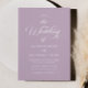 Este é um Convite de Casamento Minimalista, com Letras Clássicas e Elegantes Lavandas!