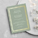 Apresentando tipografia de script de caligrafia na moda e um quadro clássico de ouro, este Convite de Casamento Elegante Minimalista Moderno de Chic Verde Sage exude uma sensação de elegância de eterno. Com suas linhas limpas e o mínimo de embelezamentos, esse convite de casamento espantoso é perfeito para casais que buscam uma estética formal e sofisticada. Projetado para impressionar seus convidados com seu layout mínimo que fala muito em simplicidade, este convite é um epítome de beleza subestimada. Peça agora e leve sua suíte de casamento para o próximo nível!