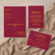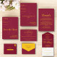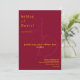 Este elegante convite de casamento de burgundy e ouro é perfeito para um casamento moderno. o simples design apresenta uma elegante caligrafia de ouro num fundo de burgundy com um monograma.