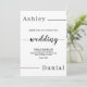 Este elegante convite de casamento preto e branco é perfeito para um casamento moderno. o simples design apresenta uma caligrafia negra elegante em um fundo branco.
