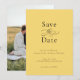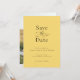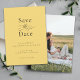 Um casamento elegante Salve o Cartão de Datas com um estilo minimalista simples em limão amarelo com tipografia negra. Esta design de gosto apresenta a letra serif clássica, junto com um elemento caligráfico elegante que soletra a palavra - a palavra. A parte traseira da placa tem um modelo de foto para adicionar sua foto escolhida. Personalize o modelo com seus detalhes de casamento para um clássico elegante Salve o Cartão de Data.