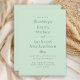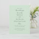 Este elegante convite de casamento verde da menta apresenta um design eterno com um fundo pastel macio e tipografia moderna. Os nomes da noiva e do noivo são lindamente realçados com uma mistura de roteiros e fontes serif clássicas, criando uma estética romântica mas limpa. Um delicado sotaque botânico acrescenta um toque natural, fazer este convite perfeito para casamentos de primavera ou de verão. Totalmente personalizável com seus detalhes, ele dá o tom para uma celebração na moda e sincera.