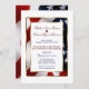 O moderno Patriótico EUA Flag Dourado Frame Wedding design com quadro de bandeira dos EUA com traço dourado, roteiro vermelho e azul sobre fundo branco e fundo de bandeira dos EUA no verso. Use a ferramenta Personalizar para adicionar suas informações. Para obter itens correspondentes, visite minha Coleção de Casamentos de Quadros Dourados com Sinalizador Elegante USA.
