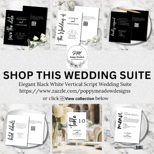 Elegant Black White Vertical Script Wedding SuiteCriado por Linda Slocum