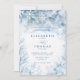 Este convite para o casamento da Floresta de Neve Inverno encarna elegância rústica com sua encantadora design de aquarela. A cena apresenta uma delicada neve branca caindo suavemente sobre uma floresta serena, com elementos foscos e tons macios e misturados de azul e branco capturando a tranquilidade de uma floresta de inverno. Perfeito para casais que amam arte, designs únicos e sofisticação moderna, este convite é a escolha ideal para casamentos no inverno em novembro, dezembro, janeiro ou fevereiro.