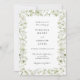 Saudações aos seus convidados especiais com o Convite para Casamento Russo Boho Greenery, Elegante, com botânicos suaves e elegantes em tons de sábio, caçador, e verde florestal com samambaias e na moda e flores brancas delicadas, todas pintadas manualmente em bela aquarela. Convide seus convidados para comemorar seu dia especial com uma coleção que captura o romance, a beleza e o capricho da estação! Encontre produtos coordenadores na Coleção Elegante Boho Chic Greenery.