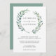 Convites de casamento verdes em verde e branco, com um louro com folhas pintadas de aquarela. Estes convites de casamento botânicos modernos têm uma folhagem adorável que é perfeita para um casamento de verão.