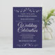 Este belo convite para o casamento apresenta um simples, mas elegante design de prata ou texto de cinza num fundo azul marinho com bordas florais de folha de papel prateado. Bem-vindos seus convidados para compartilhar seu dia especial de celebração de casamento com esses convites lindos. Um casamento é uma celebração única de amor, amigos e família. Torne seus núpcias realmente memoráveis com estes convites bonito e na moda. Este convite é totalmente personalizável, para que você possa alterar o texto de acordo com sua situação e suas necessidades.