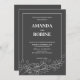 Celebre o seu amor com este Convite de Casamento Minimalista Moderno Preto e Branco, combinando design elegância e elegância natural. Apresentando linhas limpas, uma fonte serif refinada, e um motif branco saboroso na base, esse convite é ideal para casais contemporâneos que apreciam beleza subestimada. Com fundo escuro sólido e elegante tipografia branca, a design é moderna e eterno. A fronteira minimalista e o sotaque foliar adicionam um toque orgânico sutil — perfeito para casamentos de jardim, cerimônias modernas ou celebrações ecologicamente conscientes.