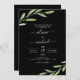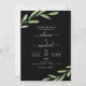 Ramo Rustic Greenery e Folhas Watercolor Spring Wedding Invances with Black Background - inclui uma bela e elegante tipografia com folha botânica e ramificação de árvores modernas para a celebração especial do Dia do Casamento.