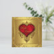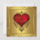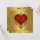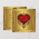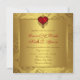 Rico damasco dourado com convite de casamento elegante vermelho e dourado com coração vermelho.