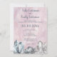 Convites de casamento elegantes com um fundo rosa pastel em aquarela pincelada. Na base dos cartões estão cristais e geodos cinza e azul. Este cartão tem um visual boho chic com um toque de elegância, perfeito para impressionar seus convidados. Personalize com nomes e todos os detalhes do casamento.