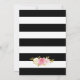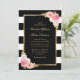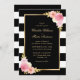 A Elegante aquarela borla cor-de-rosa, convites para casamentos florais cor-de-rosa, com flores rosas e cor-de-rosa esbranquiçada e verde-dourado sobre fundo listrado preto e branco. Itens correspondentes disponíveis. Personalizar facilmente online.