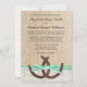 Convites rústicos do casamento do país. Caracterizando um fundo de serapilheira com laço branco e o falso mint a fita verde com um par de ferraduras do vintage. O design é ilustrações/gráficos impressos - FITA NAO REAL. Aperfeiçoe para um casamento ocidental ou o casamento do celeiro.
