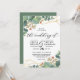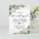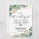 Este é um belo convite de casamento com flor de eucalipto com design de forma geométrica dourada.