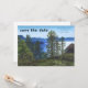 Presente perfeito para quem ama viajar. Este convite estilo cartão postal também é divertido para quem ama Tahoe, a praia, Nevada e a natureza. Adicione estilo e belas vistas da água do lago às suas participações de casamento.