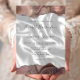 As bordas superior e inferior deste convite de casamento moderno e elegante apresentam uma borda de ágata em aquarela taupe aparada com brilho prateado falso. O texto personalizável combina caligrafia, fontes sem serifa e itálico em cinza carvão sobre uma imagem de fundo de seda branca. O verso apresenta um design de ágata e seda correspondente.