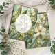 Este convite encantado para o casamento do jardim da floresta apresenta flores brancas macios e verde com seus detalhes sobre uma faixa branca moldada em ouro. Você pode manter seus nomes do meio ou excluí-los e usar apenas primeiro e sobrenomes se preferir. Use a ferramenta design simples para explorar fontes. Disponível em impressão, como download digital ou ambos.