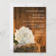 Convide convidados para o estilo de fazenda rústico ou cerimônia de casamento de rancho com o casual, mas clássico, Hydrangea Branca e o Convite para Casamento de Madeira Celestial. Este convite de casamento personalizado informal e elegante apresenta uma fotografia floral tênue de uma flor branca de hydrangea florssom e um lenço vintage aparado de linho em um fardo de feno com um fundo de madeira marrom e curada. Inpo perfeito ou ideia para uma cerimônia relaxada de festa de celeiro e evento de celebração de recepção. Disponível como um convite impresso para envio por correio ou como um download digital para fácil compartilhamento digital online.