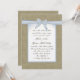 O olhar de Burlap e um arco azul para o seu casamento ou ocasião especial. Design completamente impresso com texto personalizável. Este produto está impresso. Não há burlap real nem nenhum arco real incluído neste produto.