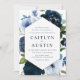 Convites casamento entre marinhos modernos e flores azuis