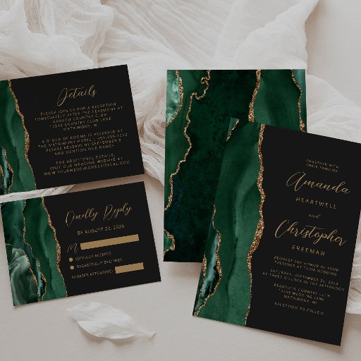 Agate Emerald Green Gold Script Dark Wedding SuiteCriado por Akhates Designs
