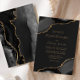 Este elegante convite de casamento moderno apresenta uma design de agata preta, aparada com uma falso brilho dourado em dois cantos. O texto personalizável combina manuscrito dourado, fontes em copperplate e itálico em um fundo preto de slate. O verso apresenta um design de agate preto e dourado correspondente.