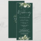 Um convite de casamento floral verde com tipografia de caligrafia elegante em um fundo esmeralda. Criado por Thisisnotme©