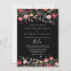 Este convite de casamento espanhol de flores silvestres multicolorido de jardim é perfeito para um casamento rústico. O design apresenta uma variedade multicolorido de flores silvestres cor-de-rosa, pinceladas, roxas, amarelas, brancas, violetas, vermelhas e burgundy em fundo preto.