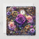 Um único convite de casamento para o steampunk com o tema floral. Matizes roxos, dourados, cobre e pretos com engrenagens metálicas, flores, rosas, teclas e outros elementos engraçados do boi.