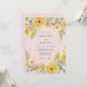 Este design apresenta uma delicada cascata de rosas amarelas e folhagens suaves, evocando uma atmosfera romântica e arejada. O estilo artístico de aquarela confere um charme pictórico, perfeito para uma celebração caprichosa. Um tom suave de rosa complementa os elementos florais vibrantes para um visual verdadeiramente encantador.