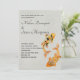 Um convite de casamento com uma ilustração de um par de peixes koi dourados nadando juntos.