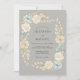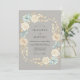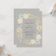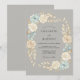 Este design apresenta uma estética sofisticada com um fundo neutro. Uma paleta de cinza de pombo, azul gelado e creme quente cria uma atmosfera refinada e tranquila. Rosas creme delicadas são combinadas com hortênsias azuis suaves e folhas de eucalipto dourado empoeirado, dispostas em uma borda botânica graciosa. Esta obra de arte em aquarela evoca a beleza tranquila de uma paisagem nevada.