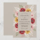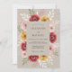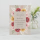 Um design suave e romântico em aquarela apresenta flores profundas de borgonha, rosa beijo e amarelo dourado dispostas em uma composição exuberante e fluida. Folhas delicadas e botões adicionam profundidade a este encantador display floral, criando uma atmosfera artisticamente bela.