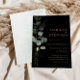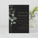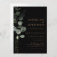 Este convite de casamento de eucalipto mínimo formal preto é perfeito para elogiar um casamento rústico. O design apresenta uma folhagem verde de eucalipto com aquarela em fundo preto.