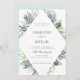 Um convite de casamento moderno e eucalipto! Ao clicar no botão "Personalizar", você poderá editar a cor da fonte, a fonte e a posição do texto e do padrão.