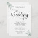 O design de convite de casamento chic apresenta um buquê de aquarela eucalipto verde e um elegante conjunto sofisticado de fontes.