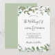 Uma elegante e rústica aquarela de eucalipto temia convite de casamento.