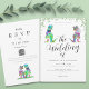 Se você e sua parceira são amantes de dino, este convite de casamento com o tema dos dinossauros, divertido e na moda, é a forma perfeita de celebrar seu grande dia! Apresentando uma noiva e um noivo T-Rex em uma vibrante mistura de azul, rosa, roxo, verde, e pêssego, este convite combina seu amor pelos dinossauros com elementos botânicos elegantes. A aquarela eucalipto e verde trazem um toque natural fresco, enquanto as engraçadas ilustrações T-Rex adicionam a quantidade perfeita de capricho e charme. Com modelos fáceis de usar, você pode personalizar rapidamente o convite adicionando os nomes da noiva e do noivo, a data do casamento, o local e todos os detalhes importantes. A inclusão de um código de QR personalizado no site de casamento facilita para os convidados a RSVP on-line, mantendo tudo dinamizado e sem estresse. Noiva de dinossauro exclusiva, noiva de noivo e noivo e obra de aquarela de eucalipto com cor de água original da artista Catherine Sweetman, este convite de casamento único combina humor, elegância e fazer de beleza inspirado na natureza é a escolha perfeita para um casal que quer adicionar uma pequena magia de dino ao seu dia especial!