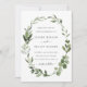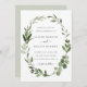 Este convite para o casamento mostra cor d'água eucalipto, folhas verdes com coroa botânica. Para personalização mais avançada deste design, clique no link "Personalizar mais". Itens correspondentes também estão disponíveis.