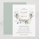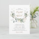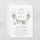 Elegante convite de casamento botânico com aquarelas de verde-sábio eucalipto verde-verde-verde-verde, folhas de louros e sotaques de ouro, com a moderna tipografia de cinza mole e seus nomes em um roteiro de ouro-na moda.
