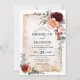 Burgundy Peach Burnt Orange Invitation com elegante buquê de burgundy, red, Marsala, maron, Peach, cor-de-rosa-salmão, coral e flores rosa de cor esbranquiçada e folhas verdes de eucalipto. E a textura de pergaminho de aquarela. Entre em contato comigo para obter ajuda sobre a personalização ou se você precisar de outro produto com este design.