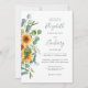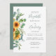 Este elegante convite para o casamento floral apresenta um buquê de aquarela de girassóis amarelos e laranja e eucalipto verde. O texto personalizável combina manuscrito, copperplate e fontes itálicas em cinzas verdes e carvões em fundo branco. O reverso é um verde sólido e coordenado. Ideal para um casamento outono rústico ou de quintal!