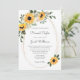 Este elegante convite de casamento de girassol e eucalipto é perfeito para um casamento de jardim de verão. Este convite apresenta girassóis amarelados de cor aquosa, com rosas brancas, hálito de bebê e eucalipto verde. Este é um esquema de cores perfeito para o final do verão ou casamento outono Faça este convite seu, incluindo seus nomes e todos os detalhes do seu casamento.
