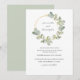 Simples e elegante é este modelo de convite para o casamento do eucalipto verde sábio. Apresentando uma trabalho de arte de eucalipto com a cor de água original, disposta em uma coroa romântica com anéis de ouro. Personalize o texto para criar algo realmente exclusivo.